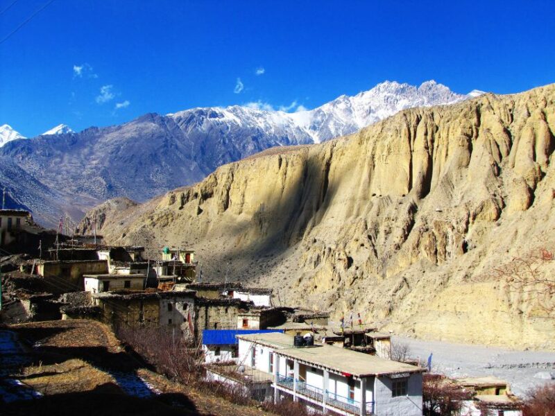 The journey begins with a scenic departure from Kathmandu to Pokhara, followed by a flight to Jomsom. From Jomsom, trekkers venture to Kagbeni, seeing the vibrant local culture.