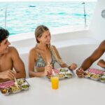 This luxury catamaran tour includes an impressive array of amenities to enhance the experience. Guests will have access to towels, snorkel gear, and life jackets, ensuring they can comfortably enjoy the water activities. The open bar offers unlimited alcoholic and non-alcoholic beverages, while a tasty lunch and snacks are provided. For convenience, there’s a restroom on board, and private transportation to and from the meeting point is included. Plus, a $20 USD per person dock fee is covered. The tour caters to various dietary needs, with vegetarian and vegan options available upon request.