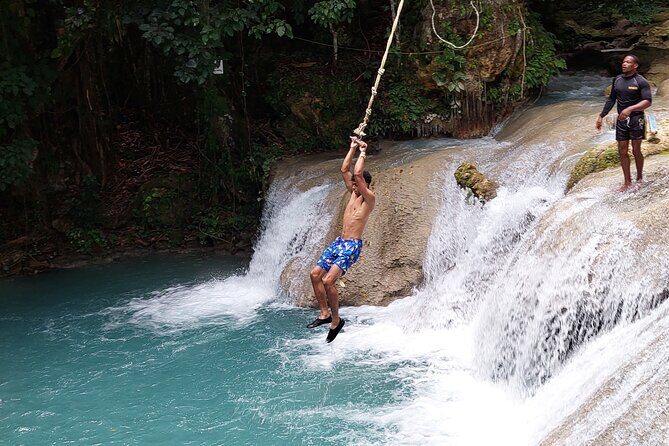 This spot offers a variety of activities. For thrill-seekers, there’s a rope swing—a classic Jamaican feature—allowing you to launch yourself into the water or try a daring cliff jump. Guides and trained lifeguards are on hand to assist, so even if you’re wary of jumping, you can explore the caves, climb behind waterfalls, or hike along the riverbanks.