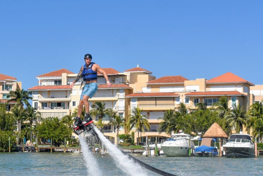 - Experience the thrill of soaring up to 40 feet above Cancun’s waters on a flyboard, a water-propelled device that allows for aerial maneuvers.