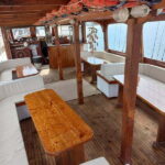 Aboard the spacious catamaran, guests can indulge in a delightful cold buffet and cheese board.