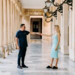 Once you arrive, your professional photographer will assist you in wearing the vibrant flying dress—a flowing gown that transforms with every breeze—creating a sense of motion and drama in your photographs. The aim is to make you look elegant and relaxed, capturing natural smiles and confident poses. The backdrop varies from colorful streets lined with Venetian architecture to coastal vistas, giving you a range of images that highlight Corfu’s charm.