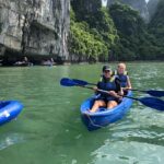 Kayaking Adventure: Paddle through emerald waters, exploring hidden lagoons and limestone karsts, providing a unique perspective of Halong Bay’s beauty.