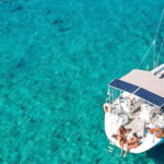 After enjoying a day of adventure on Dia Island, guests can savor a delightful Mediterranean dining experience aboard the sailboat.