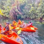 After exploring the Emerald Pool, guests embark on a serene kayaking adventure at Ao Thalane, a tranquil bay surrounded by towering limestone cliffs and lush mangrove forests.