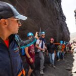 The guides lead the group through this dramatic volcanic setting, sharing insights into the geological processes that have shaped this natural wonder over centuries.