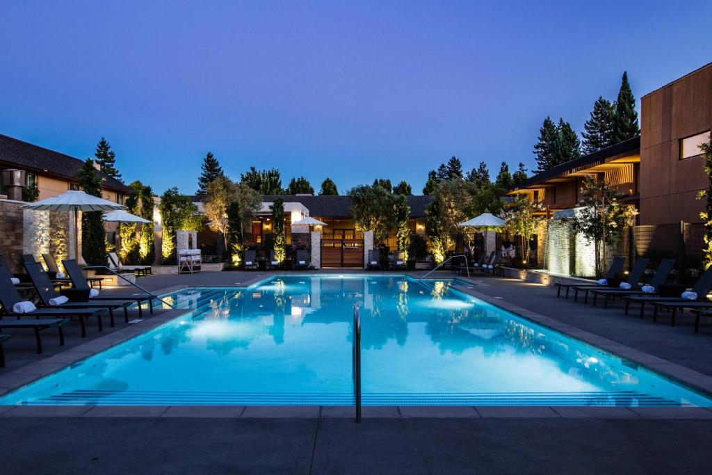 The Napa Valley Marriott Hotel & Spa offers a luxurious 4-star retreat in the heart of California’s renowned wine country. Guests can enjoy an array of premium amenities, including an outdoor swimming pool, full-service spa, and two on-site restaurants with diverse dining options.