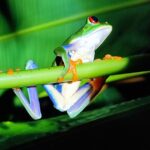 Frogs: Colorful frogs, like the red-eyed tree frog, showcase the jungle’s diversity and beauty.