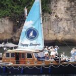 The boat is equipped with a skipper and sailor, and personalized music is provided via Bluetooth to enhance the experience.