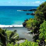 Travelers will marvel at the lush landscapes, stopping at iconic spots such as the famous Wai’anapanapa State Park.