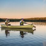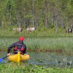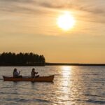 Beneath the enchanting glow of Lapland’s Midnight Sun, participants embark on an unforgettable canoeing adventure that immerses them in the region’s stunning natural beauty.