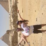 When visiting the pyramids, she recommends lightweight, breathable clothing, a wide-brimmed hat, and comfortable shoes. It gets hot and dusty, so sunscreen and sunglasses are smart choices too. Staying hydrated’s key!