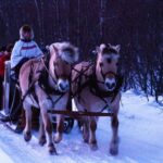 The sleigh ride takes guests on a 30-40 minute journey through the picturesque Mathisdalen valley near Alta, Norway. Passengers bundle up in warm, provided gear as they ride on a traditional Norwegian sleigh pulled by a team of hardy horses.
