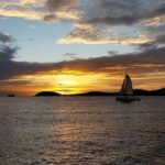 - Scenic sunset boat ride showcasing vibrant colors reflecting on calm Caribbean waters in St. Thomas.