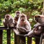 Visitors can expect to spot groups of long-tailed macaques roaming freely throughout the lush, forested grounds of the Sacred Monkey Forest Sanctuary. These playful primates make their home in the protected natural habitat, offering an up-close look at their behaviors and social dynamics as they move about the trees and trails.