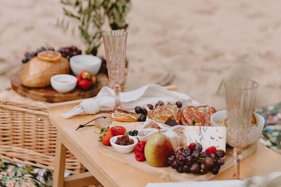 Flexible picnic options: Choose from different packages, from simple seasonal produce to deluxe spreads with cheeses, charcuterie, and wine.