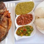 The traditional Zambian wedding typically features a variety of local dishes, including nshima (a stiff maize porridge), chibwabwa (pounded cassava leaves), and nsima (maize-based sadza). Guests often enjoy these staple foods along with grilled or fried meat and vegetables.